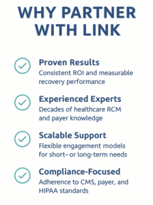 Link has absolutely zero upfront costs as we work on a contingency basis. In addition, and at no cost to the provider, our dedicated implementation team will work directly with your staff to install the program.